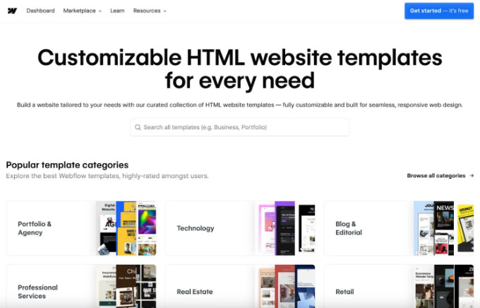 Webflow是一个无代码建站工具,提供更多自定义选项。它可能适合那些想要完善网站每个细节的人——即使需要一段时间,因为Webflow比其他平台有更高的学习曲线。Webflow拥有超过7000个模板(一些免费,一些付费),并在其平台的付费版本中提供基本的电商功能。请注意,这些功能的交易费用比其他平台同等价格计划更高。